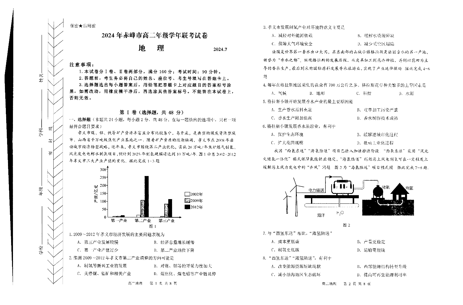 内蒙古自治区赤峰市高2025届下学期7月期末考试地理