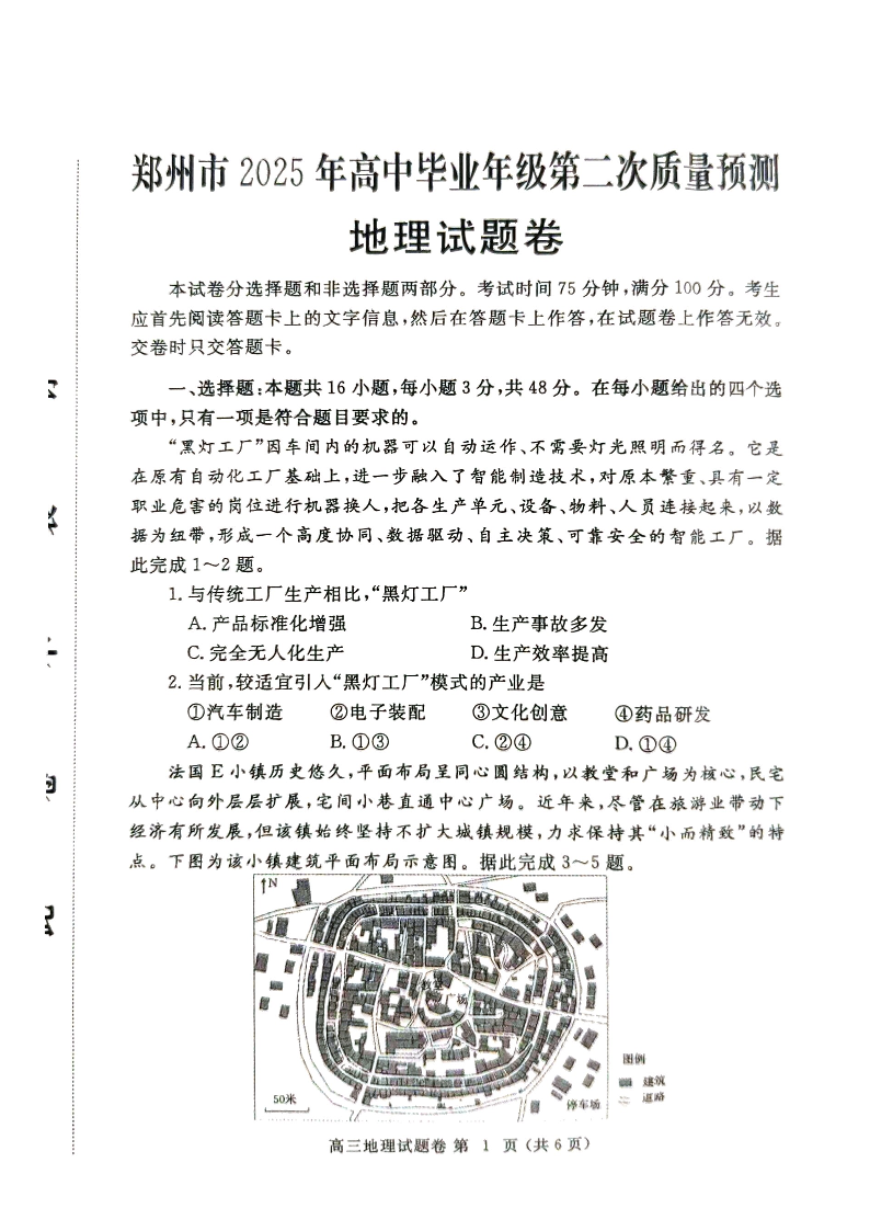 河南省郑州市2025届高中毕业年级第二次质量预测(郑州二模)地理
