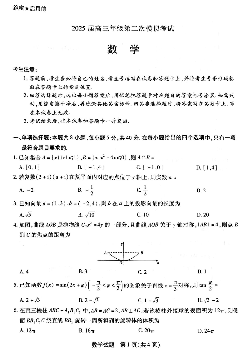 河南天一大联考2025届高三3月联考(安阳、鹤壁、焦作、濮阳)高三第二次模拟考试数学+答案
