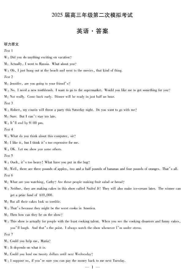 河南天一大联考2025届高三3月联考(安阳、鹤壁、焦作、濮阳)高三第二次模拟考试英语答案