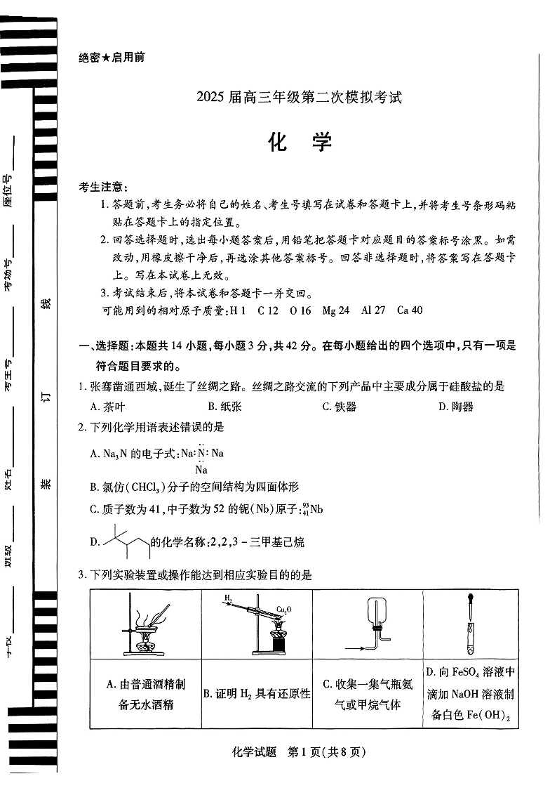 河南天一大联考2025届高三3月联考(安阳、鹤壁、焦作、濮阳)高三第二次模拟考试化学+答案