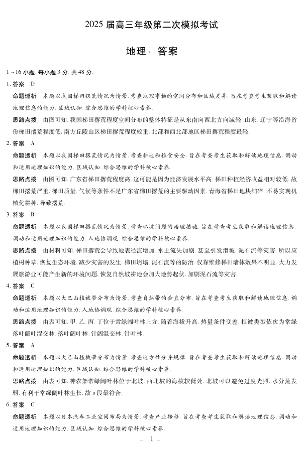河南天一大联考2025届高三3月联考(安阳、鹤壁、焦作、濮阳)高三第二次模拟考试地理答案