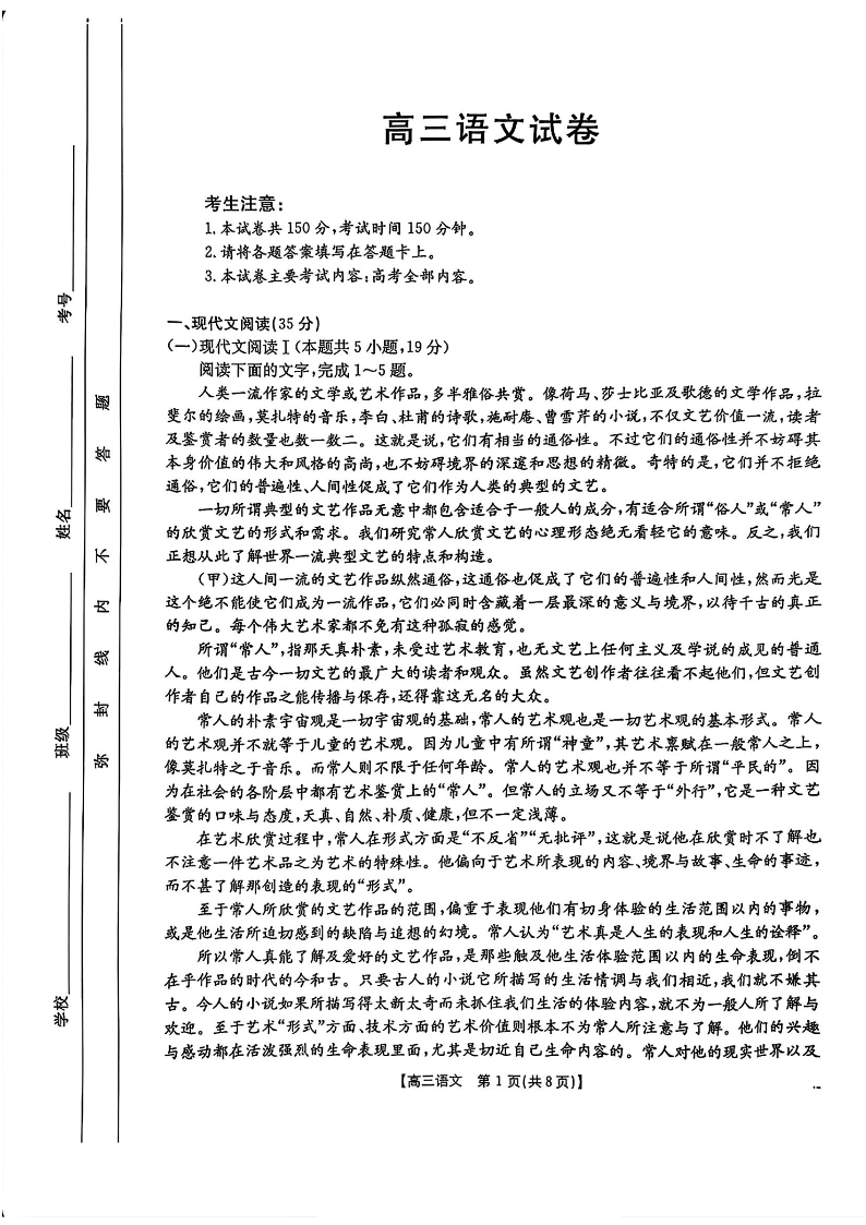 江西省金太阳三新教研共同体2025届高三3月联考语文+答案