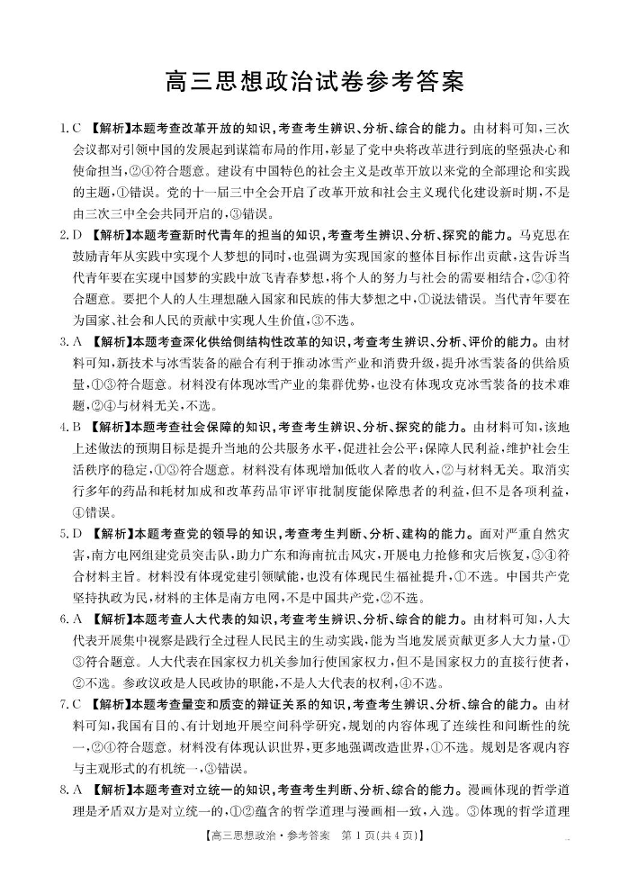 江西省金太阳三新教研共同体2025届高三3月联考政治答案