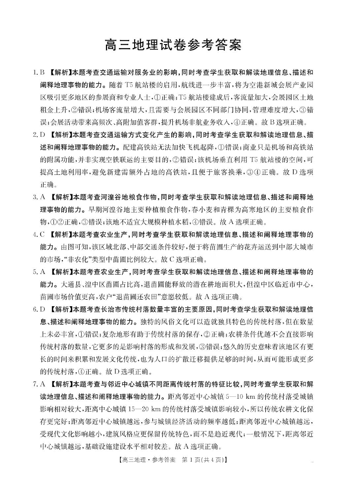 江西省金太阳三新教研共同体2025届高三3月联考地理答案