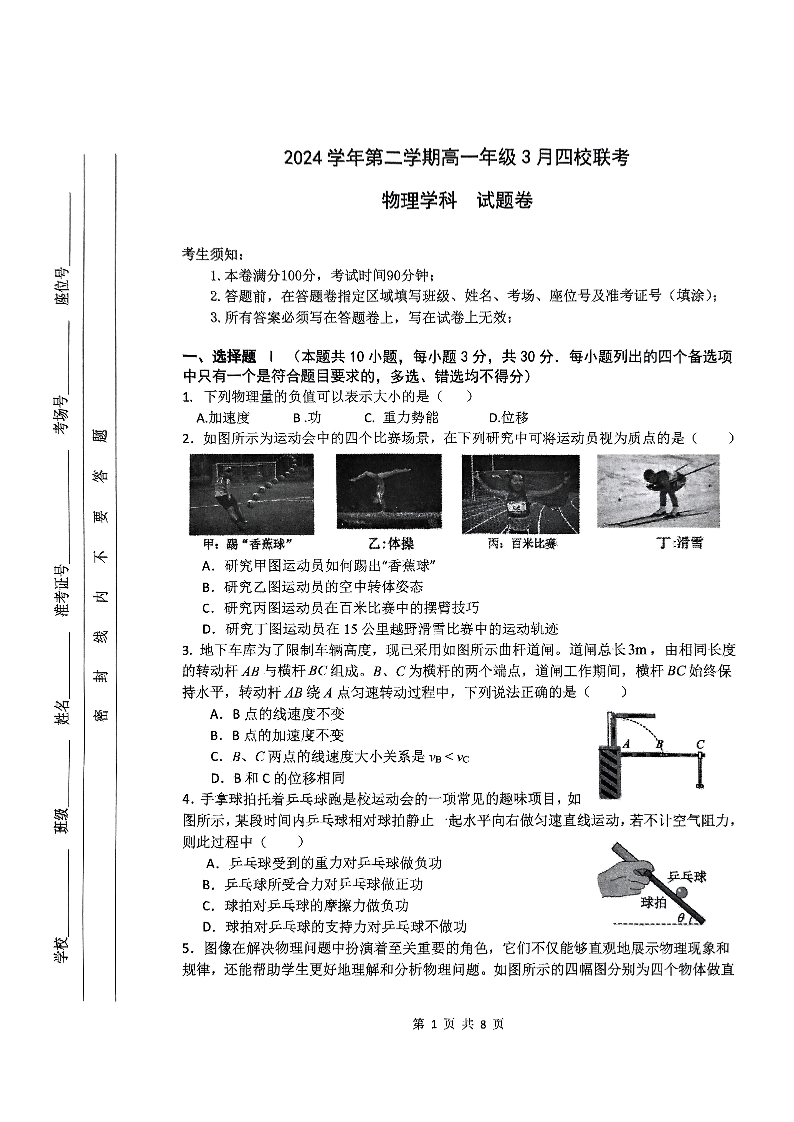 浙江省四校2024-2025学年下学期3月高一月考物理