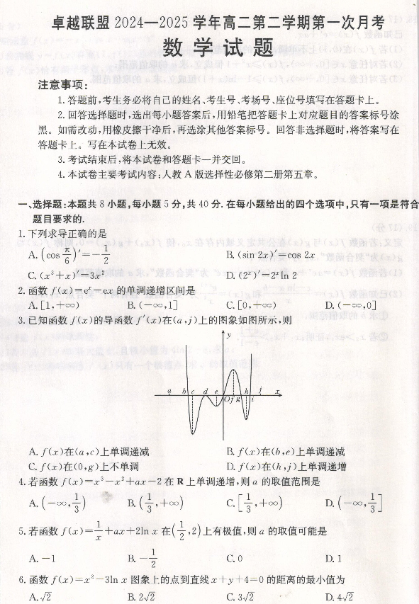 河北省邢台市卓越联盟2024-2025学年下学期3月高二第一次月考数学