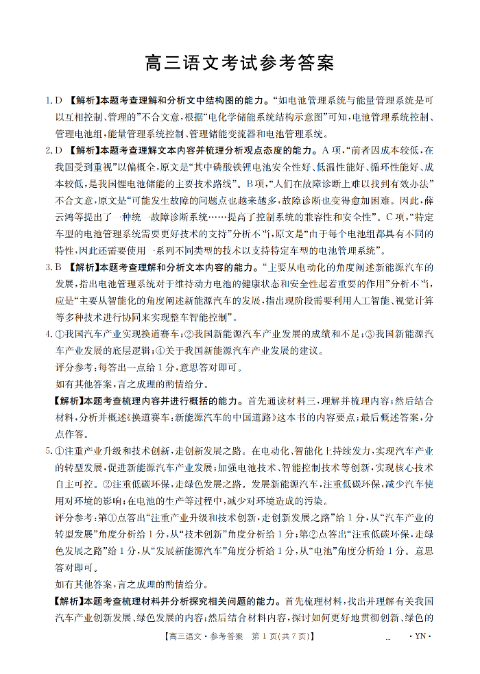 云南省区域高中2024-2025学年下学期3月高三联考语文答案