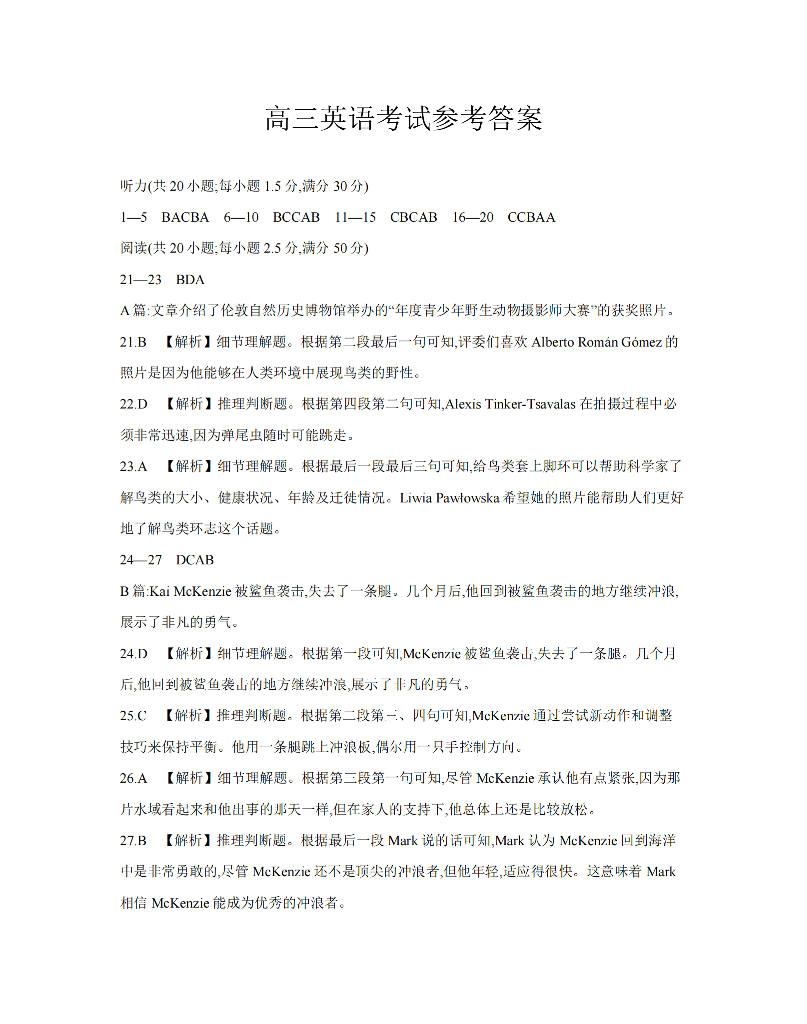 云南省区域高中2024-2025学年下学期3月高三联考英语答案