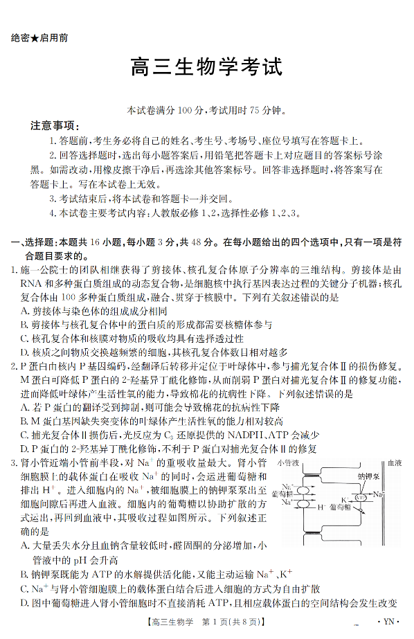 云南省区域高中2024-2025学年下学期3月高三联考生物