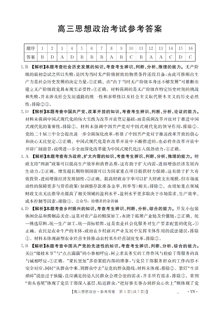 云南省区域高中2024-2025学年下学期3月高三联考政治答案
