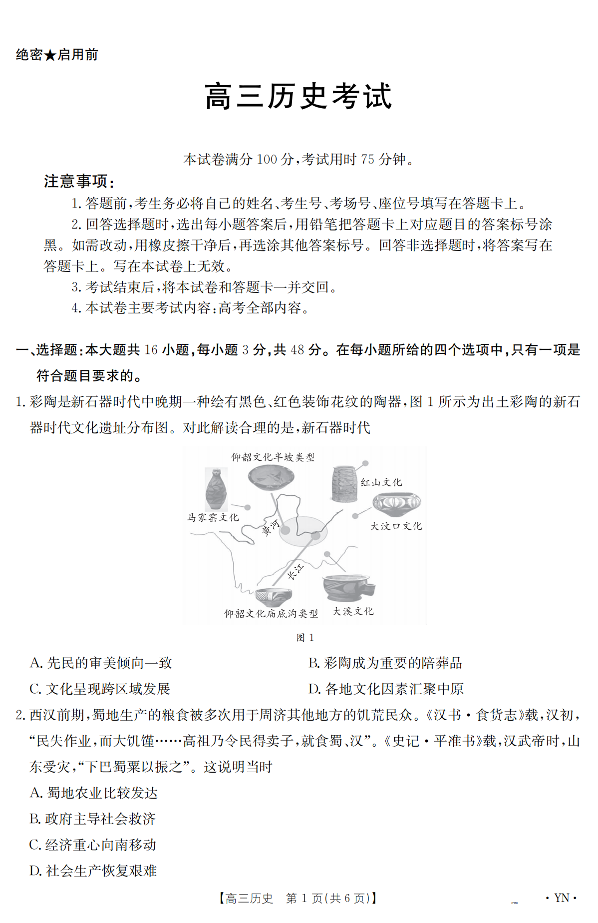 云南省区域高中2024-2025学年下学期3月高三联考历史