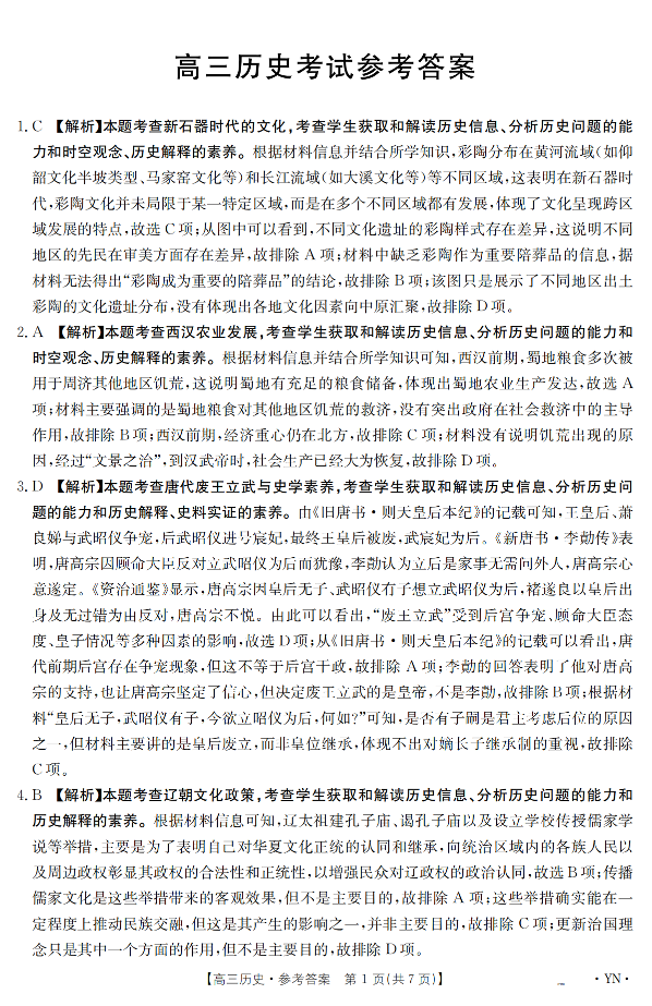 云南省区域高中2024-2025学年下学期3月高三联考历史答案