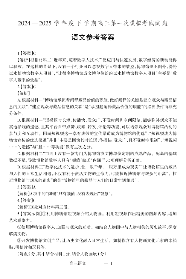 辽宁省重点高中协作校2024-2025学年下学期高三第一次模拟语文答案