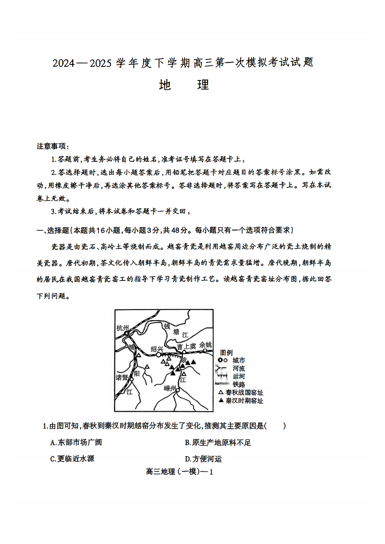 辽宁省重点高中协作校2024-2025学年下学期高三第一次模拟地理