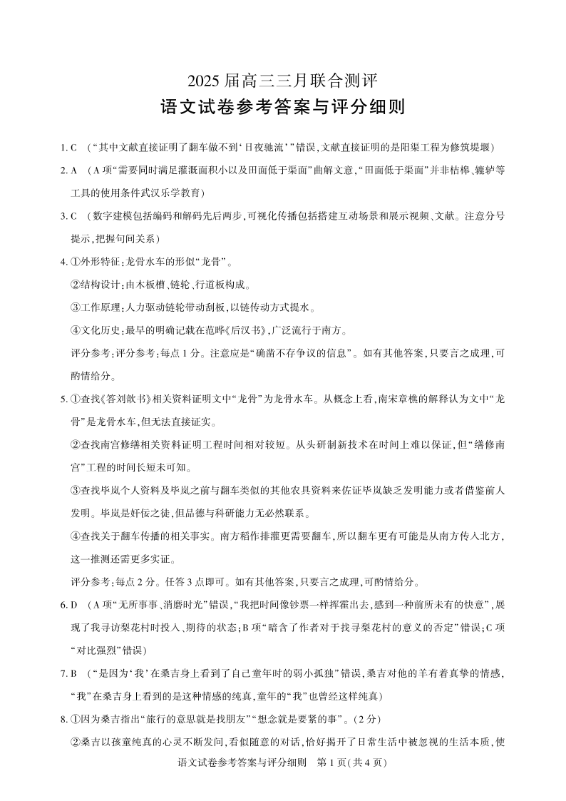 湖北省圆创教育教研中心2024-2025学年下学期3月高三联合测评语文答案