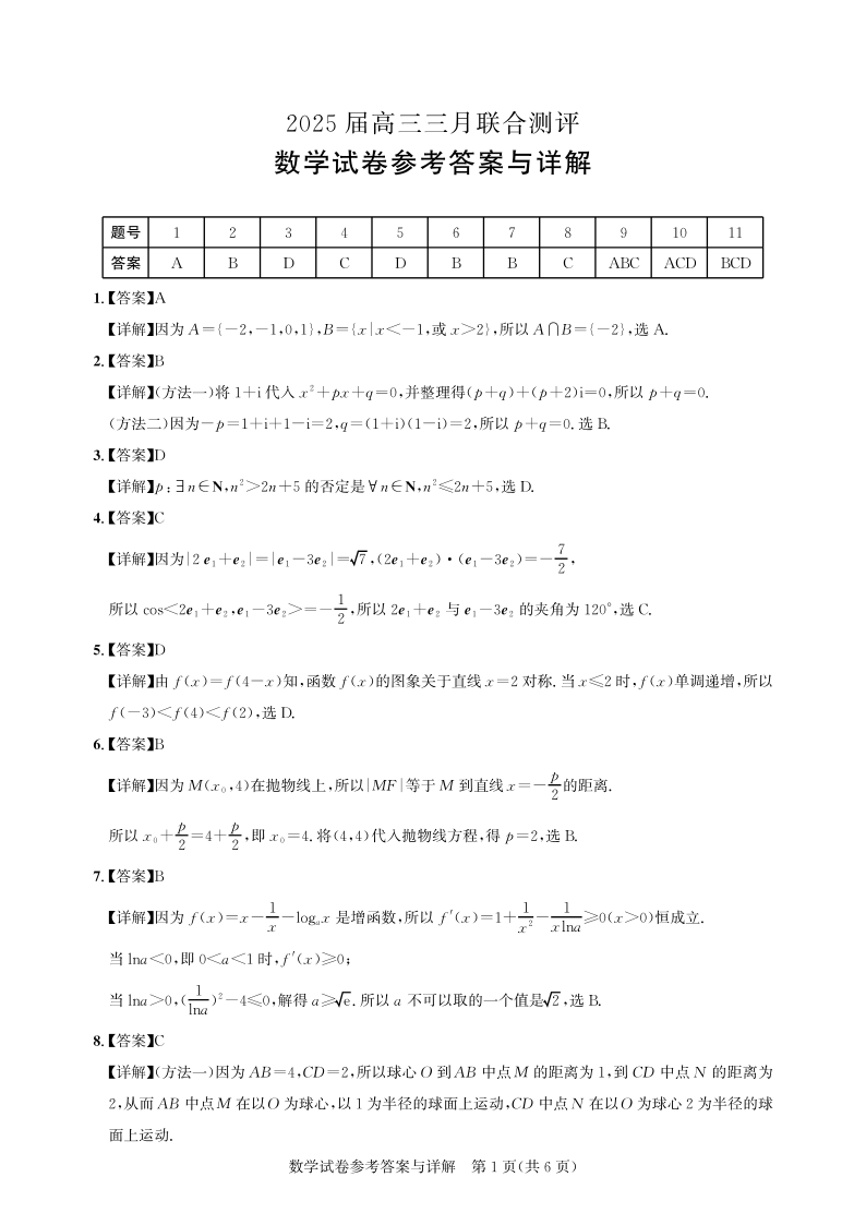 湖北省圆创教育教研中心2024-2025学年下学期3月高三联合测评数学答案