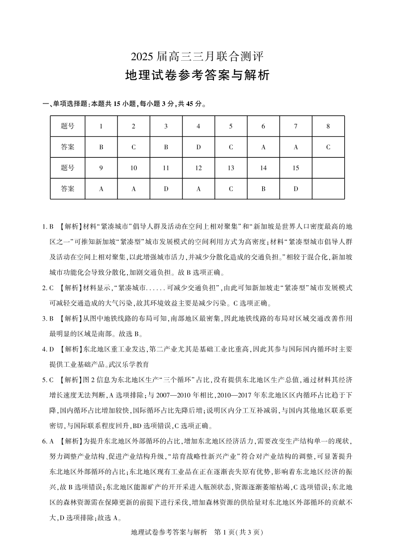 湖北省圆创教育教研中心2024-2025学年下学期3月高三联合测评地理答案
