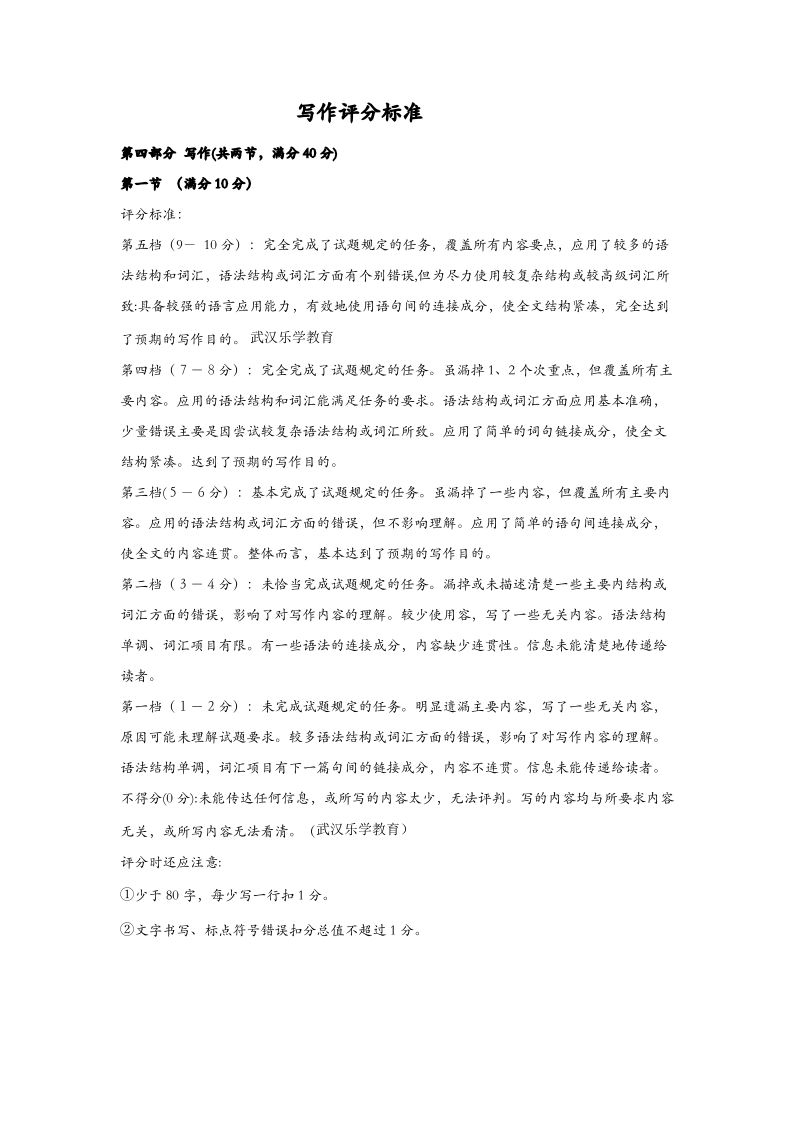 湖北省圆创教育教研中心2024-2025学年下学期3月高三联合测评日语写作评分标准参考