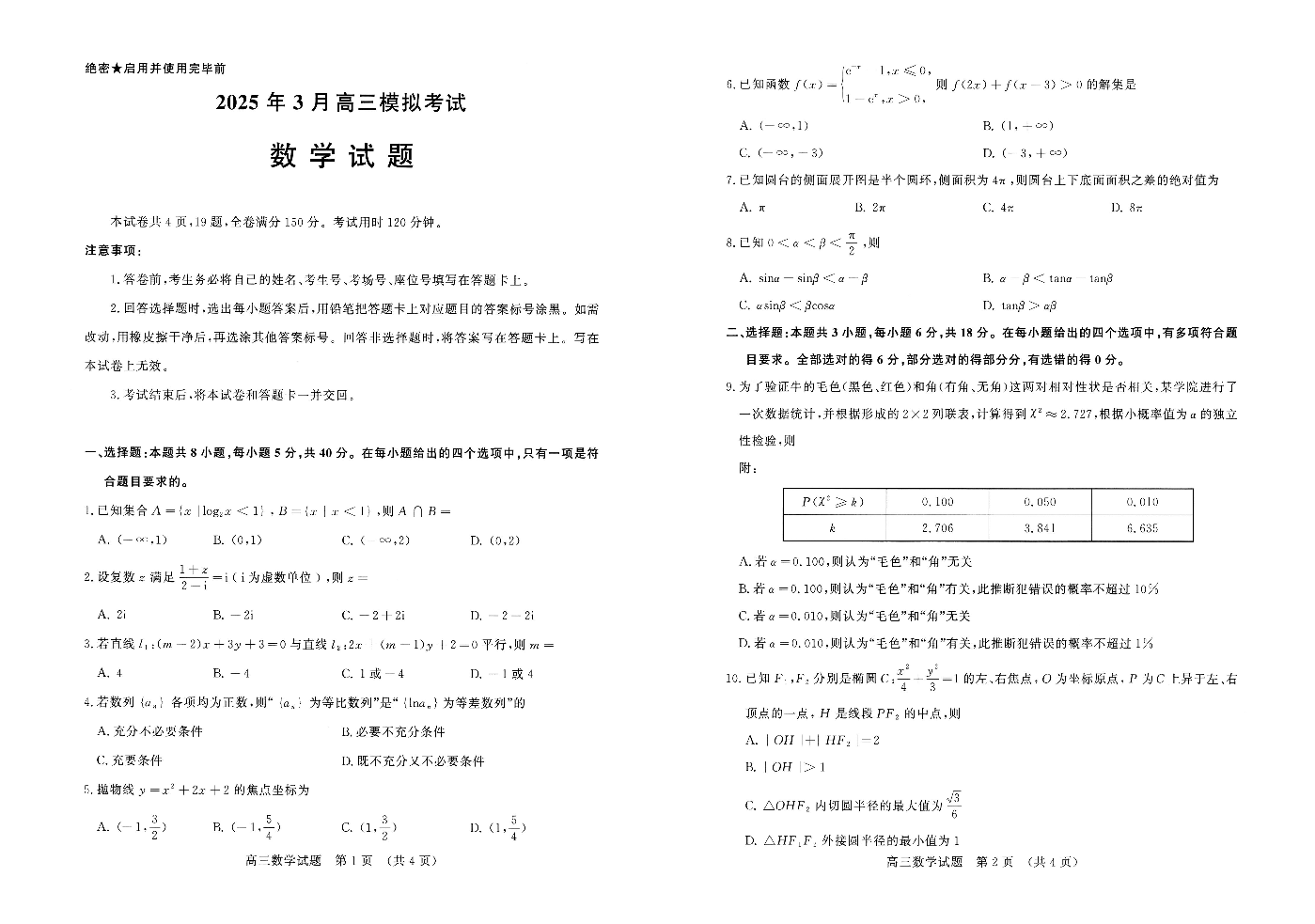 山东省济南市2024-2025学年下学期3月高三一模统考数学