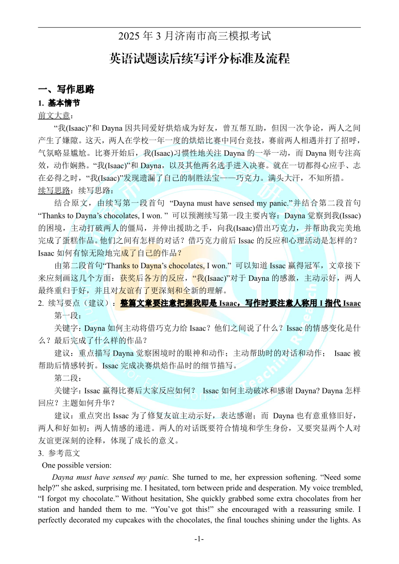 山东省济南市2024-2025学年下学期3月高三一模统考英语读后续写评分标准