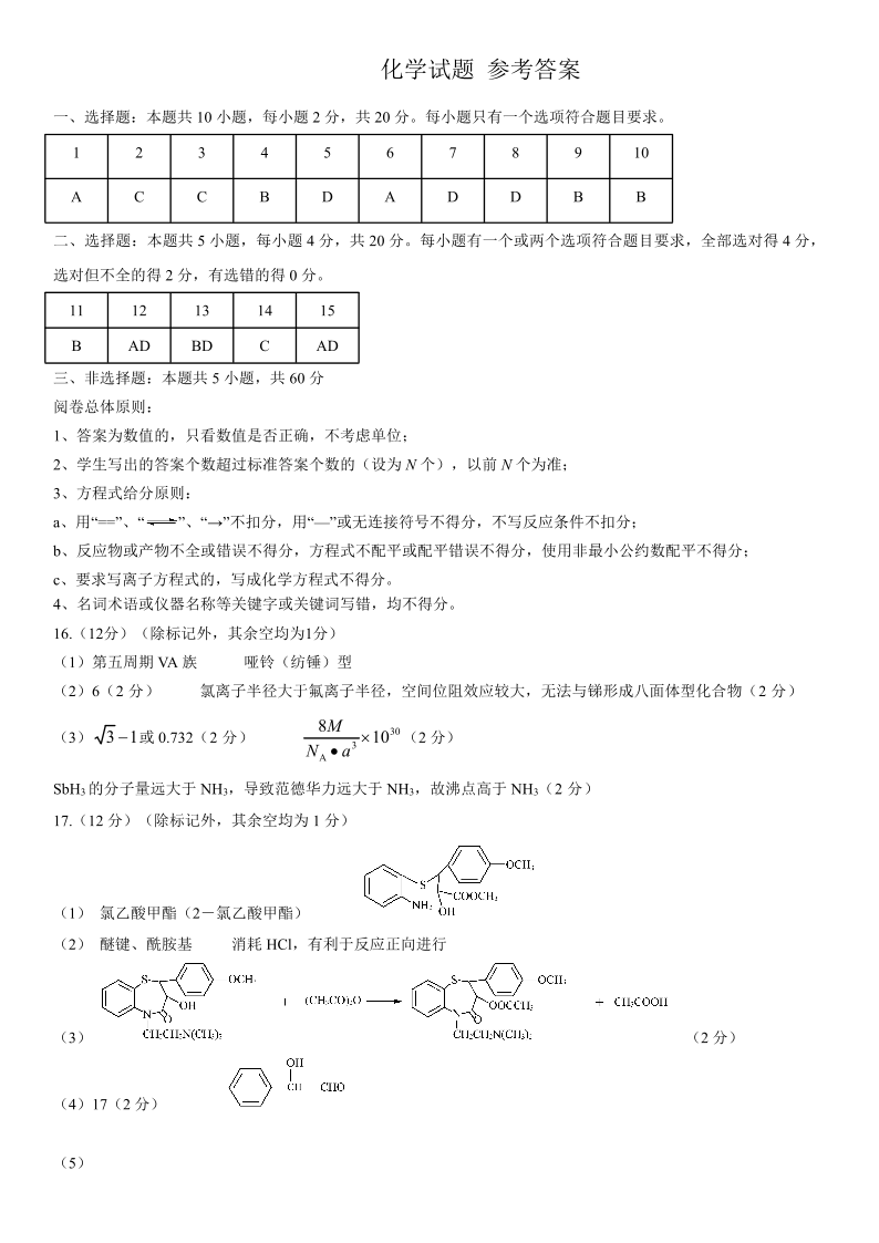 山东省济南市2024-2025学年下学期3月高三一模统考化学答案
