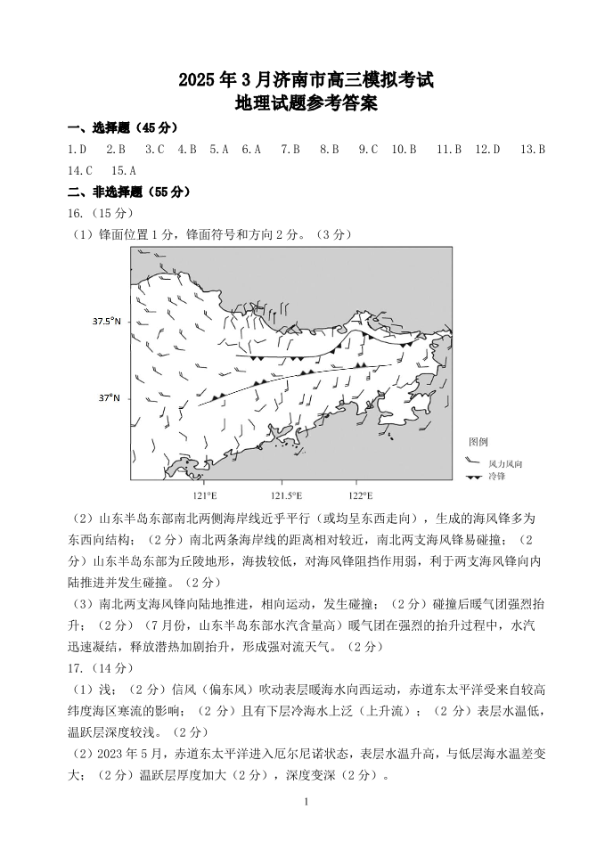 山东省济南市2024-2025学年下学期3月高三一模统考地理答案