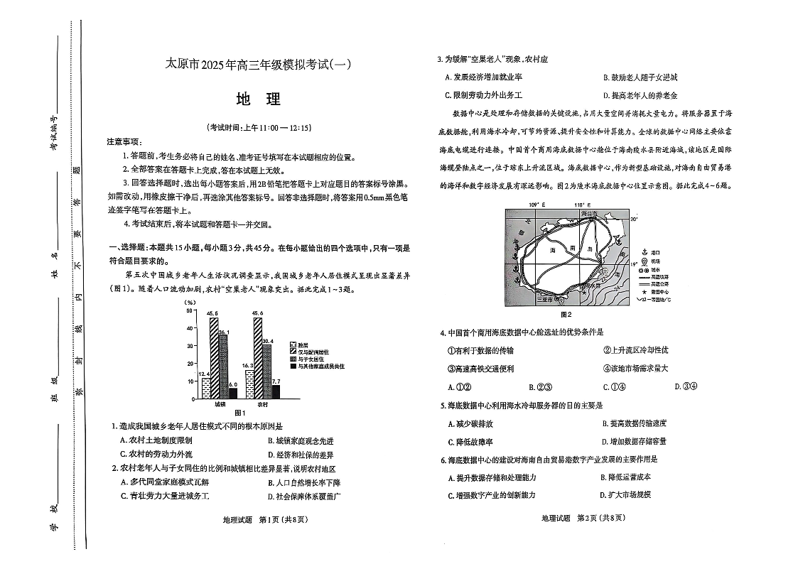 山西省太原市2024-2025学年下学期3月高三一模考试地理