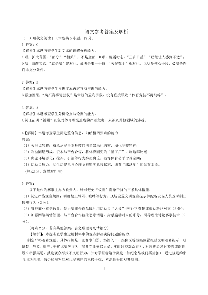 黑龙江省齐齐哈尔市2024-2025学年下学期3月高三二模考试语文答案