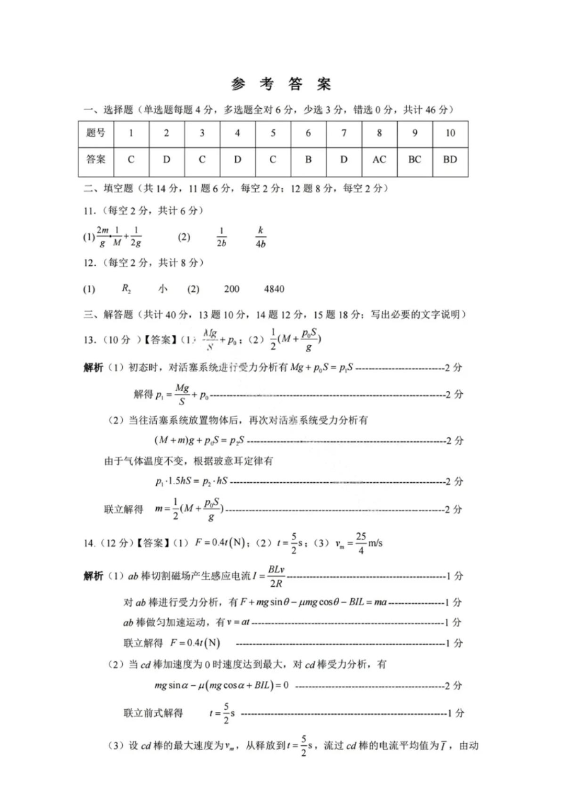 黑龙江省齐齐哈尔市2024-2025学年下学期3月高三二模考试物理答案