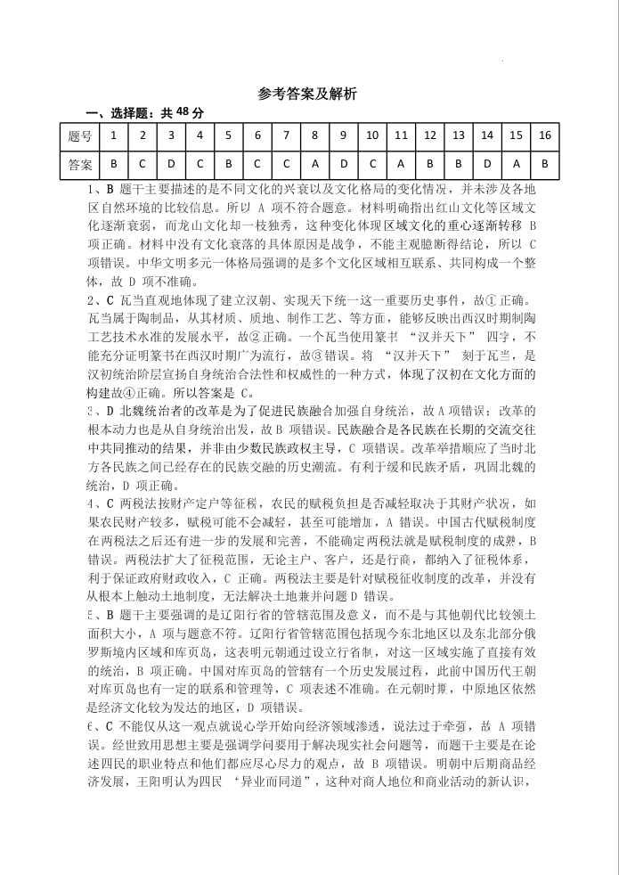 黑龙江省齐齐哈尔市2024-2025学年下学期3月高三二模考试历史答案