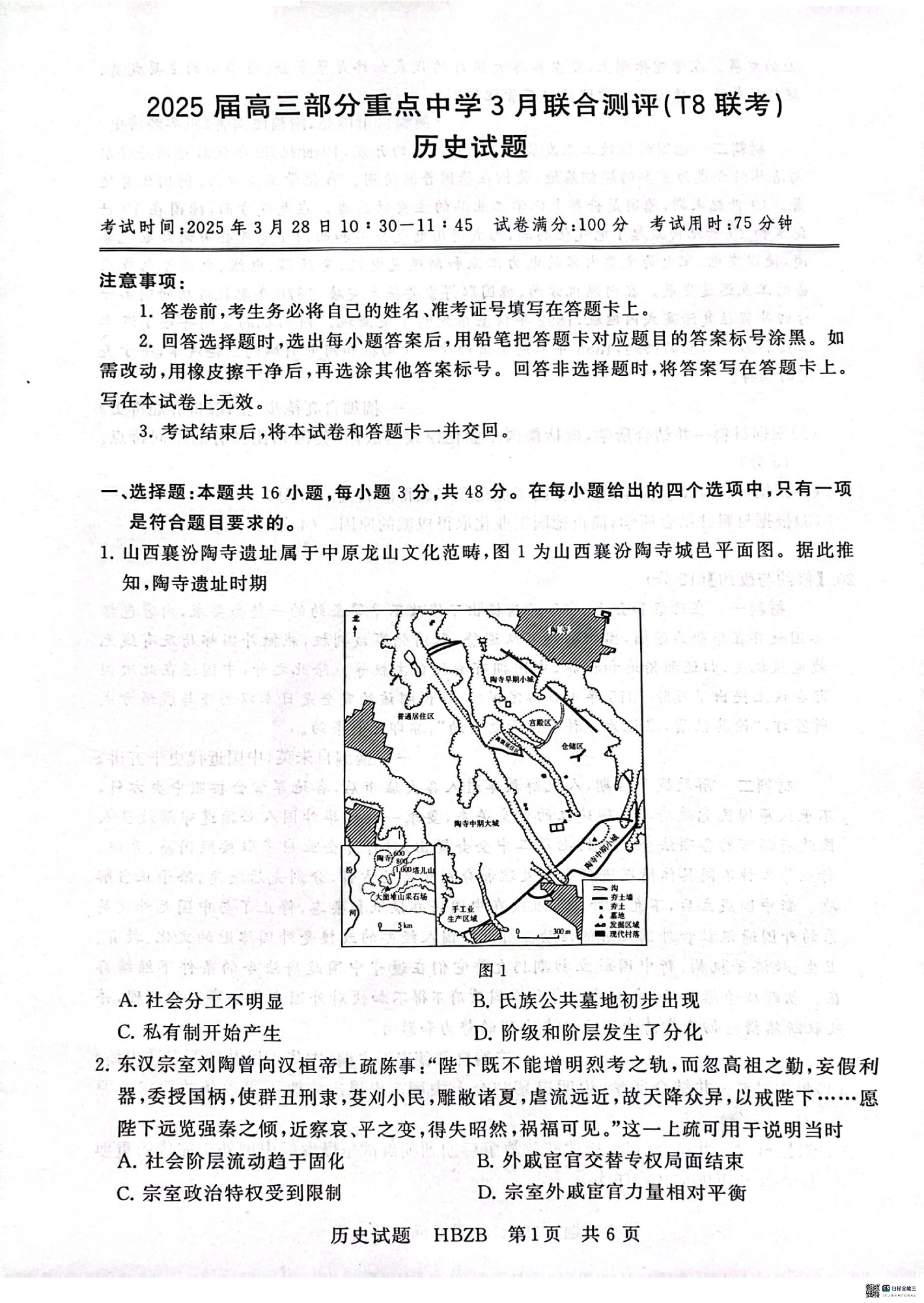八省八校重点中学2024-2025学年下学期3月联合测评历史(河北版)