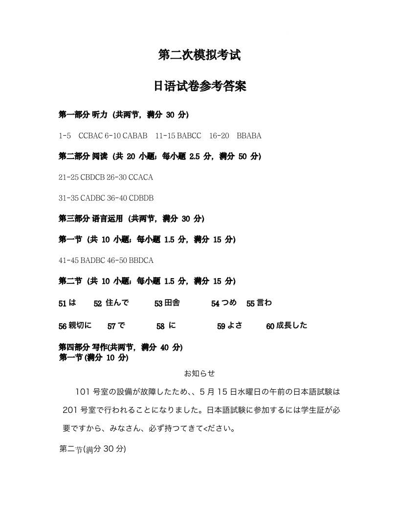 江西省九江市2024-2025学年下学期3月高三二模统一考试日语答案+听力原文