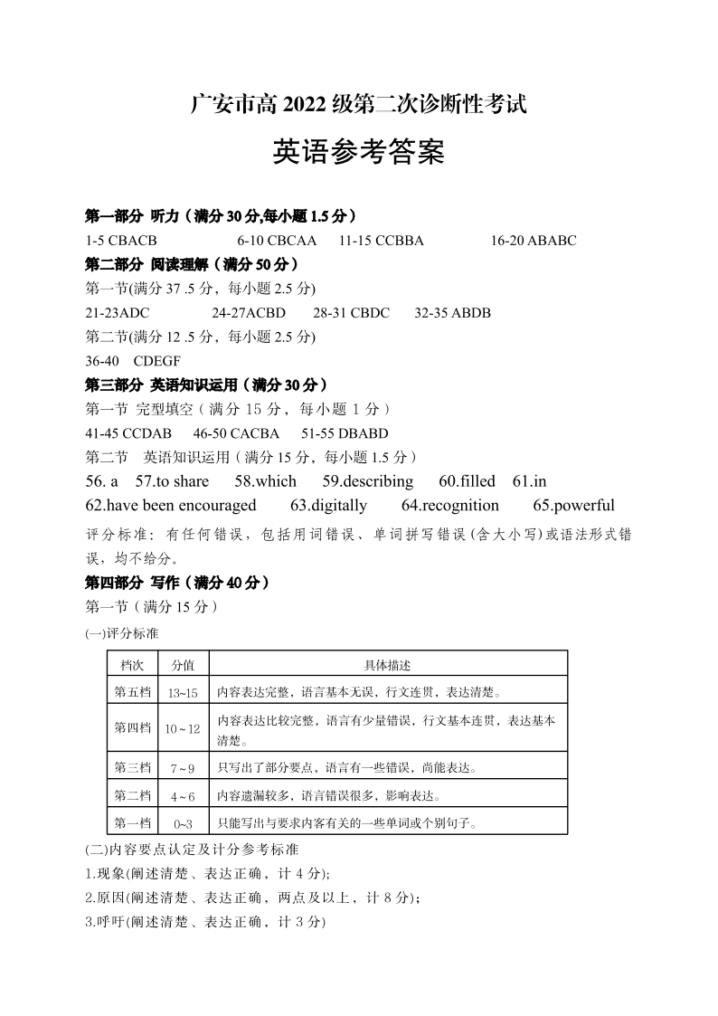 四川省广安等六市2024-2025学年下学期高三二诊考试英语答案