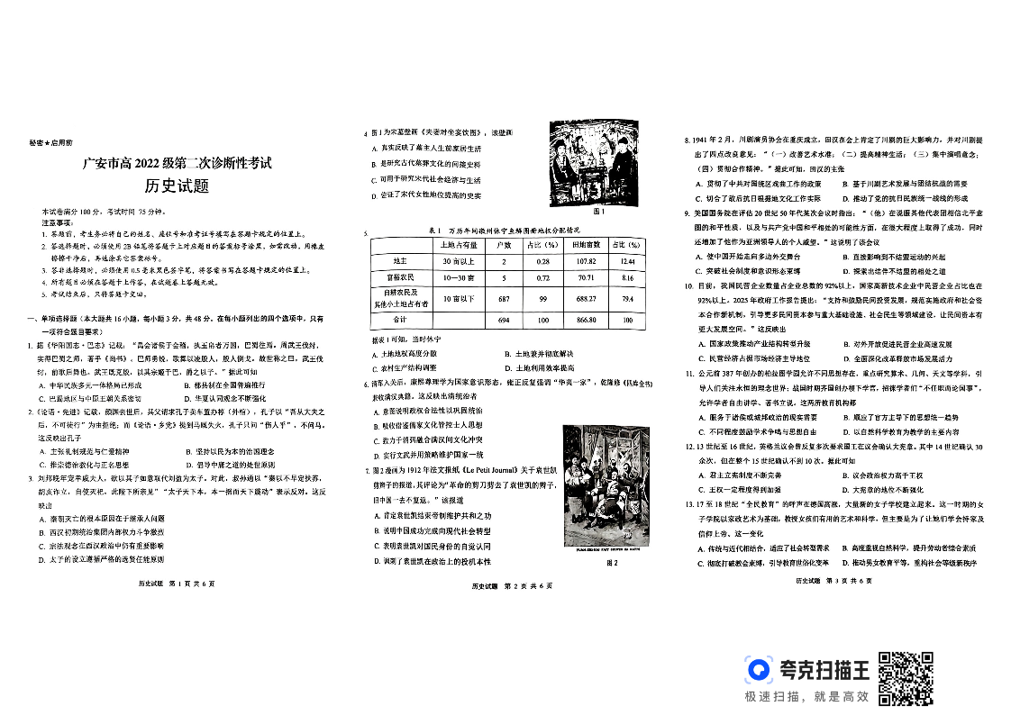 四川省广安等六市2024-2025学年下学期高三二诊考试历史