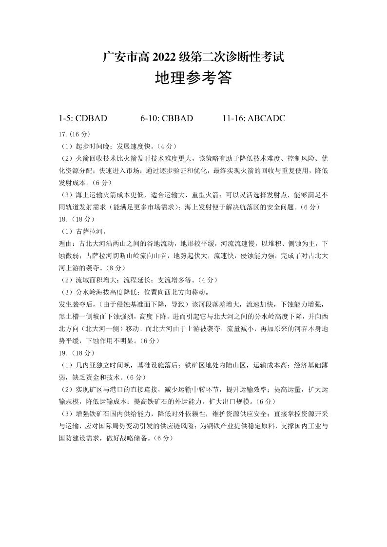 四川省广安等六市2024-2025学年下学期高三二诊考试地理答案
