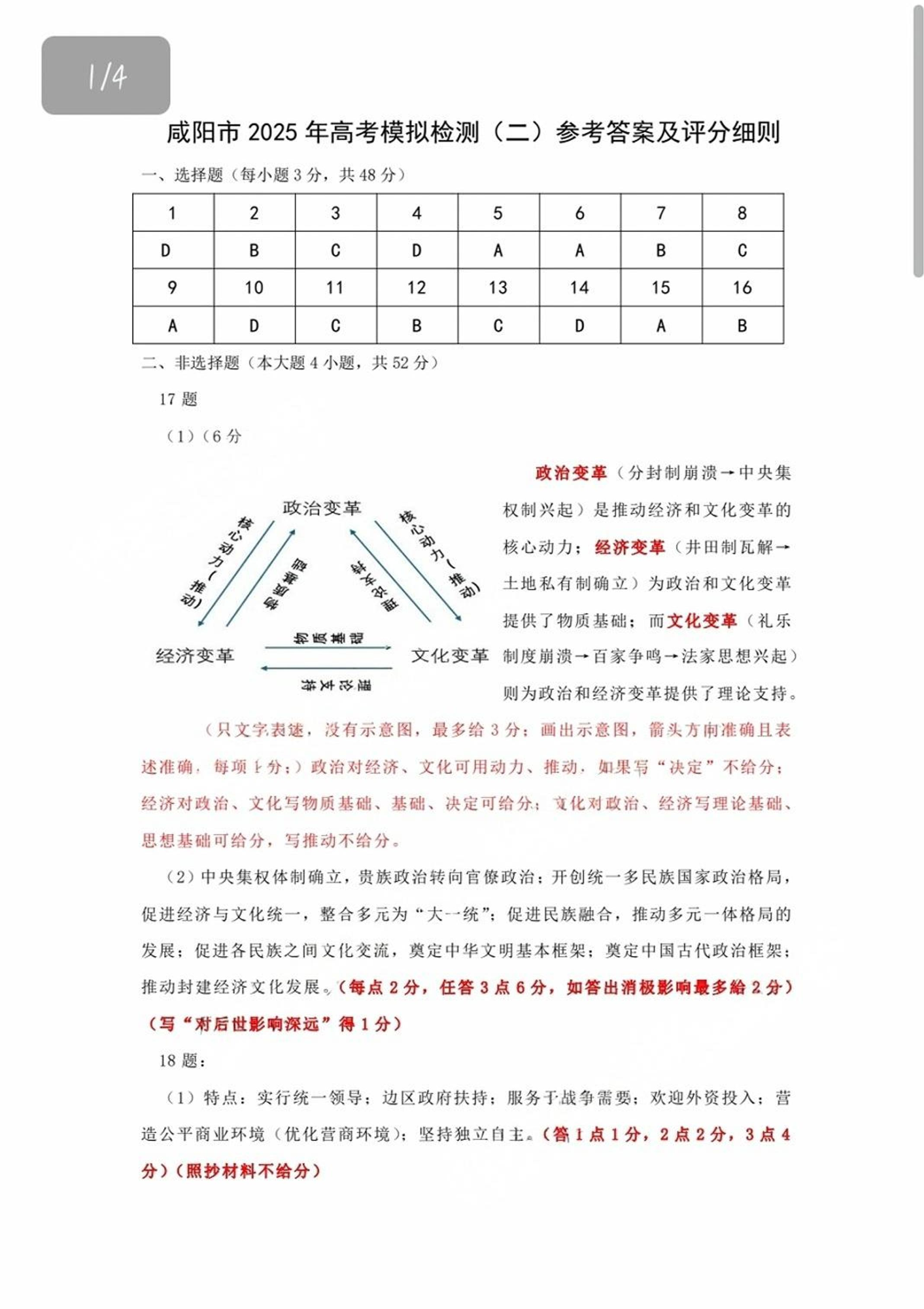 陕西省咸阳市2024-2025学年下学期3月高三二模检测历史答案