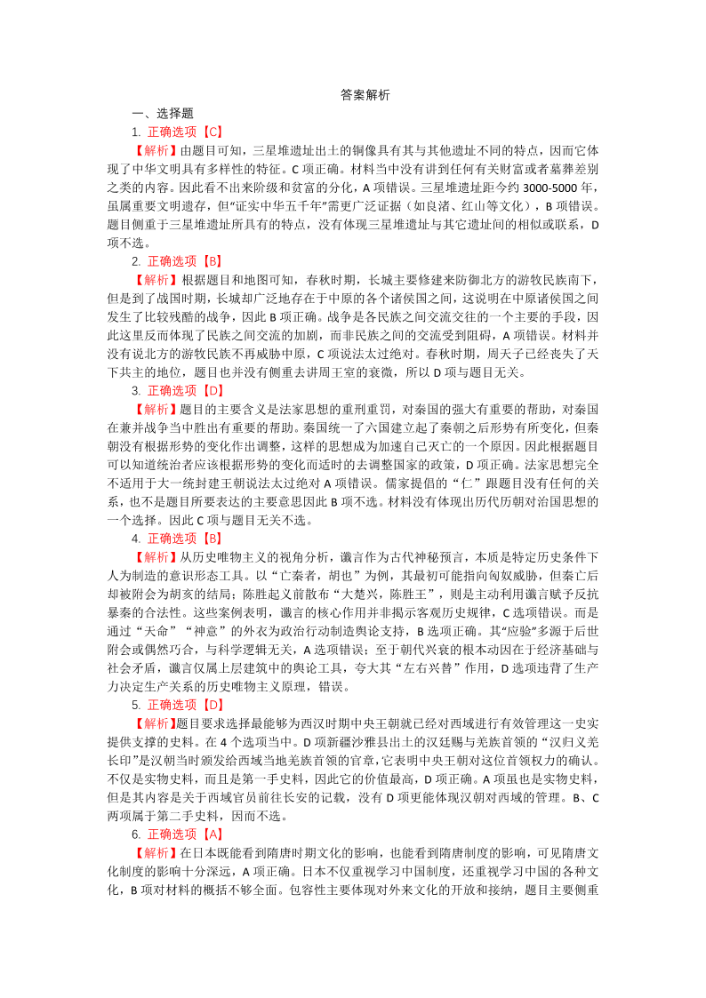 重庆市巴蜀中学2024-2025学年下学期3月高一月考历史答案