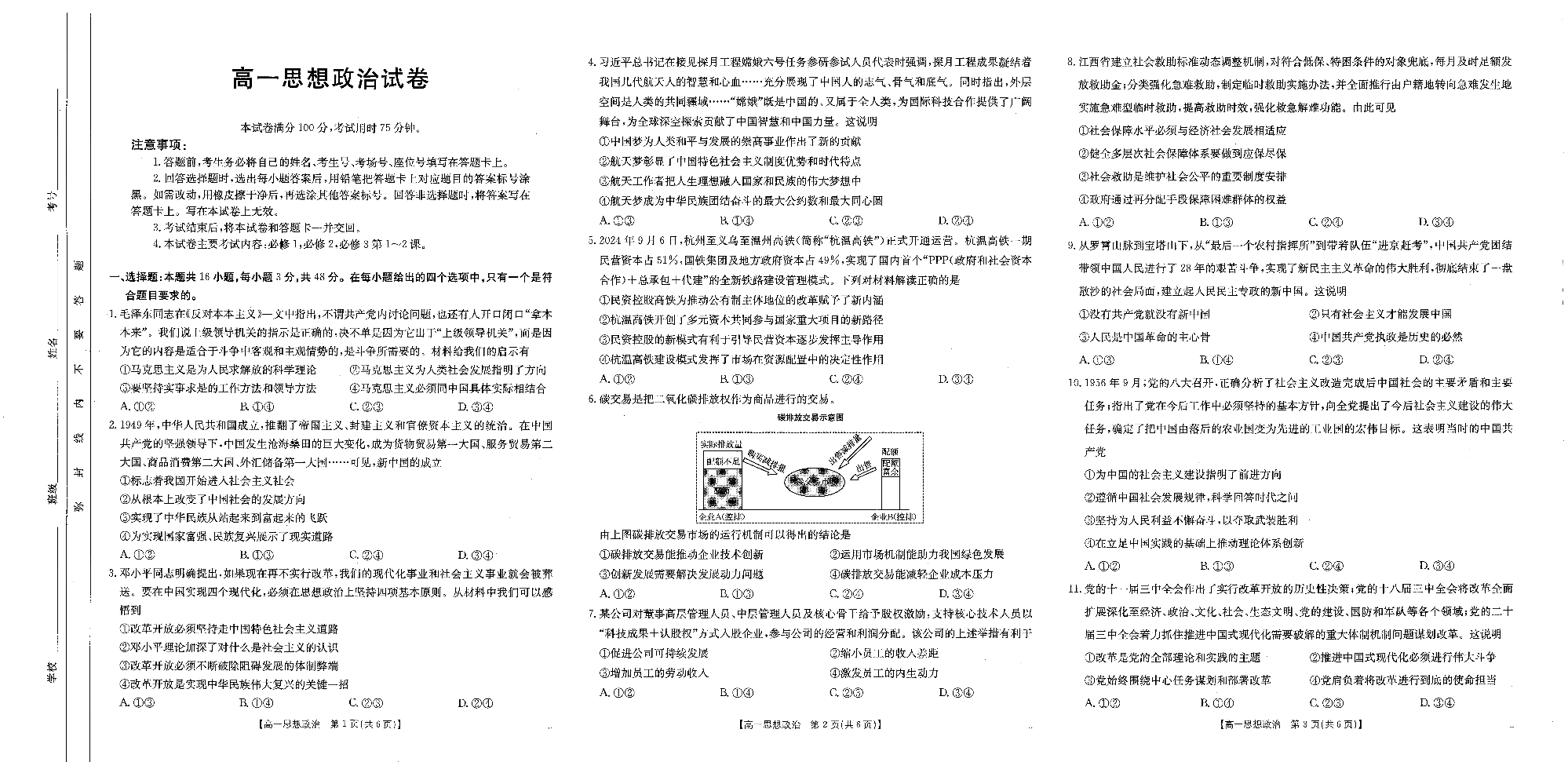 江西省部分学校2024-2025学年下学期3月高一第五次联考政治+答案