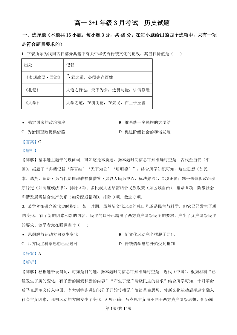 河北省保定市部分高中2024-2025学年下学期3月高一月考历史(精品解析版)