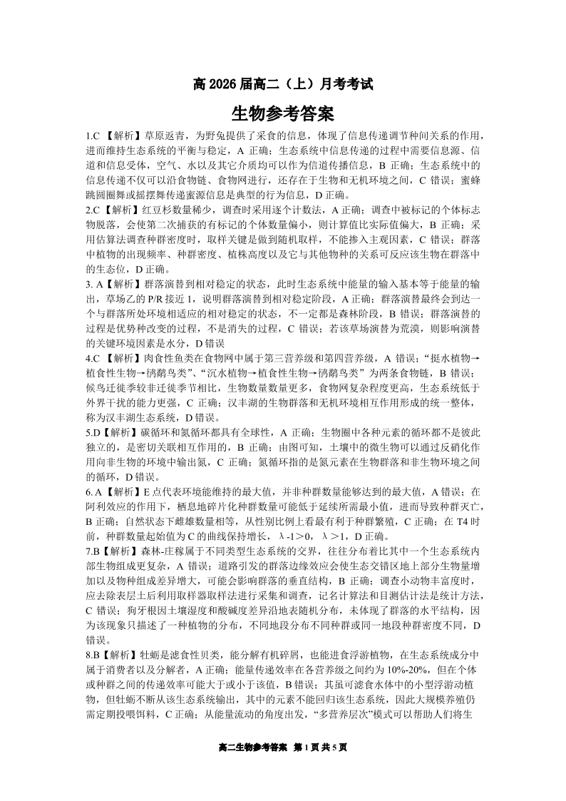 重庆市巴蜀中学2024-2025学年下学期3月高二月考生物答案