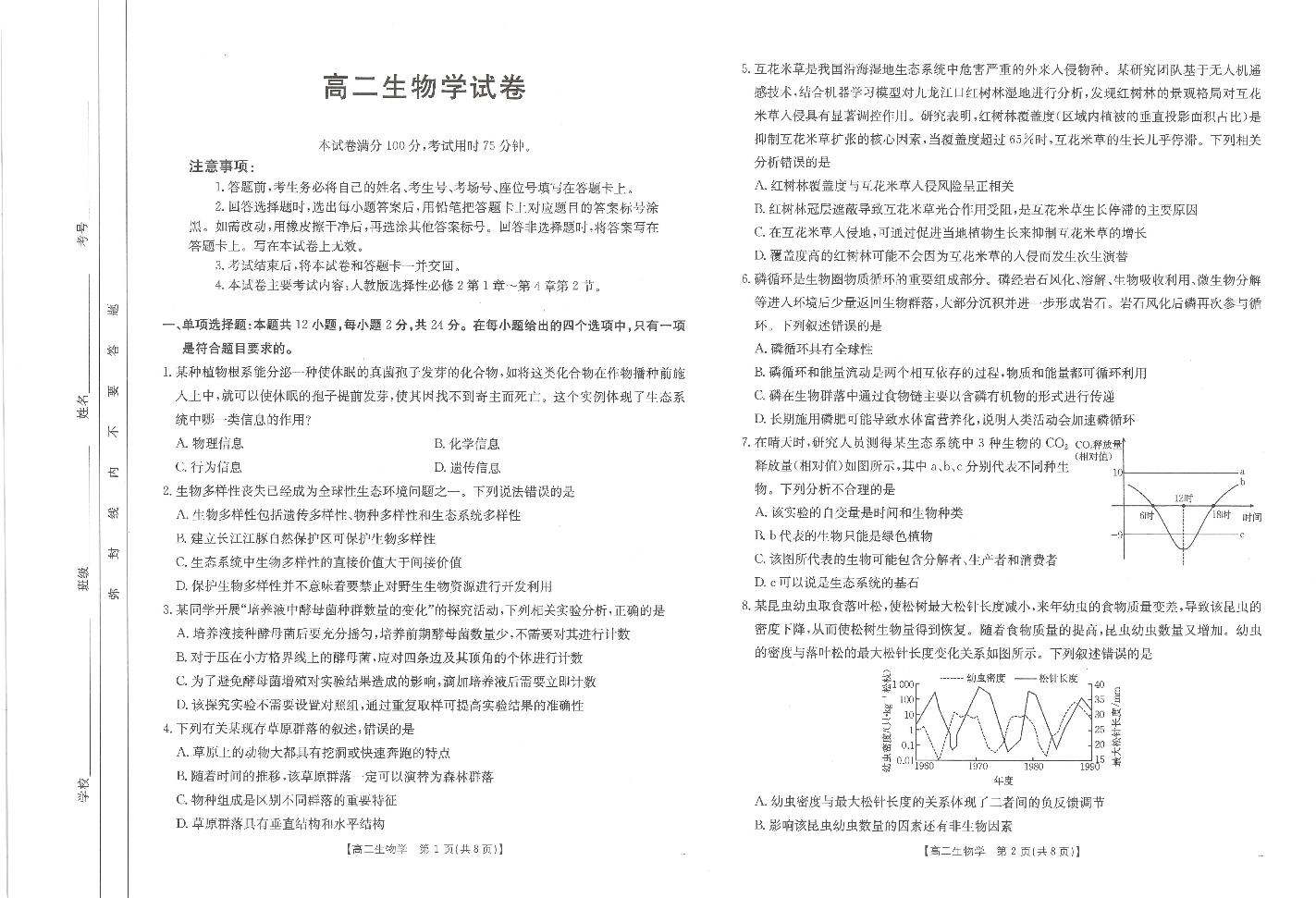 江西省部分学校2024-2025学年下学期3月高二第五次联考生物+答案