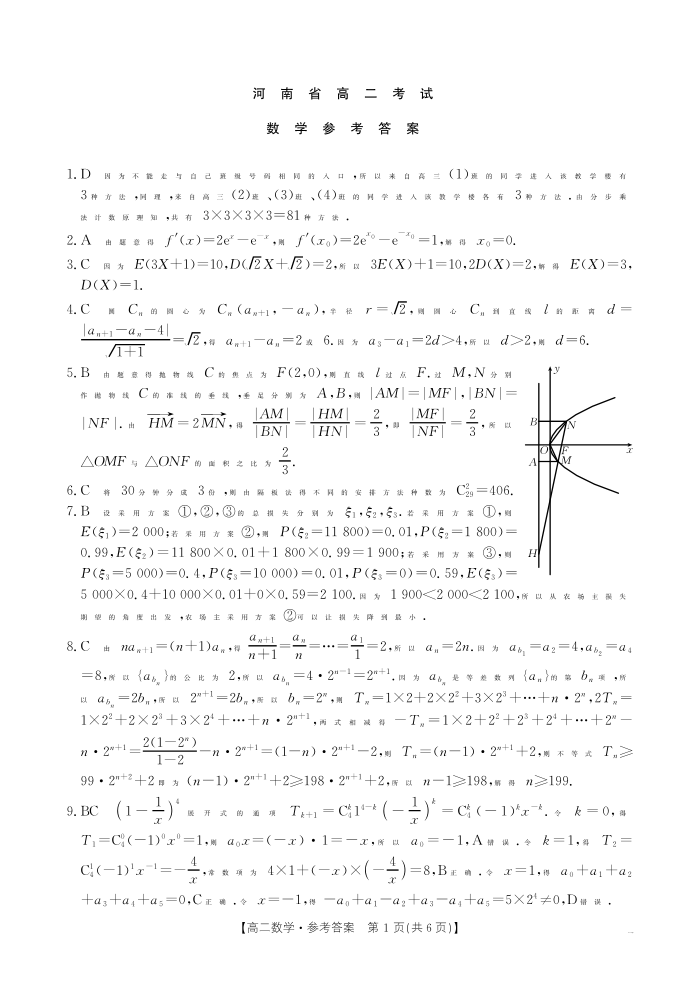 河南省安鹤新联盟2024-2025学年下学期3月高二联考数学答案