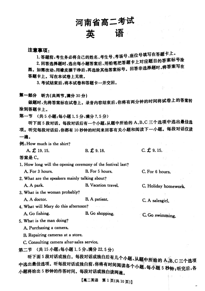 河南省安鹤新联盟2024-2025学年下学期3月高二联考英语