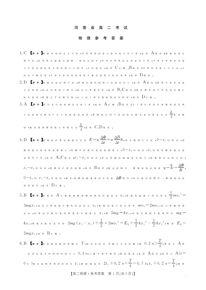 河南省安鹤新联盟2024-2025学年下学期3月高二联考物理答案