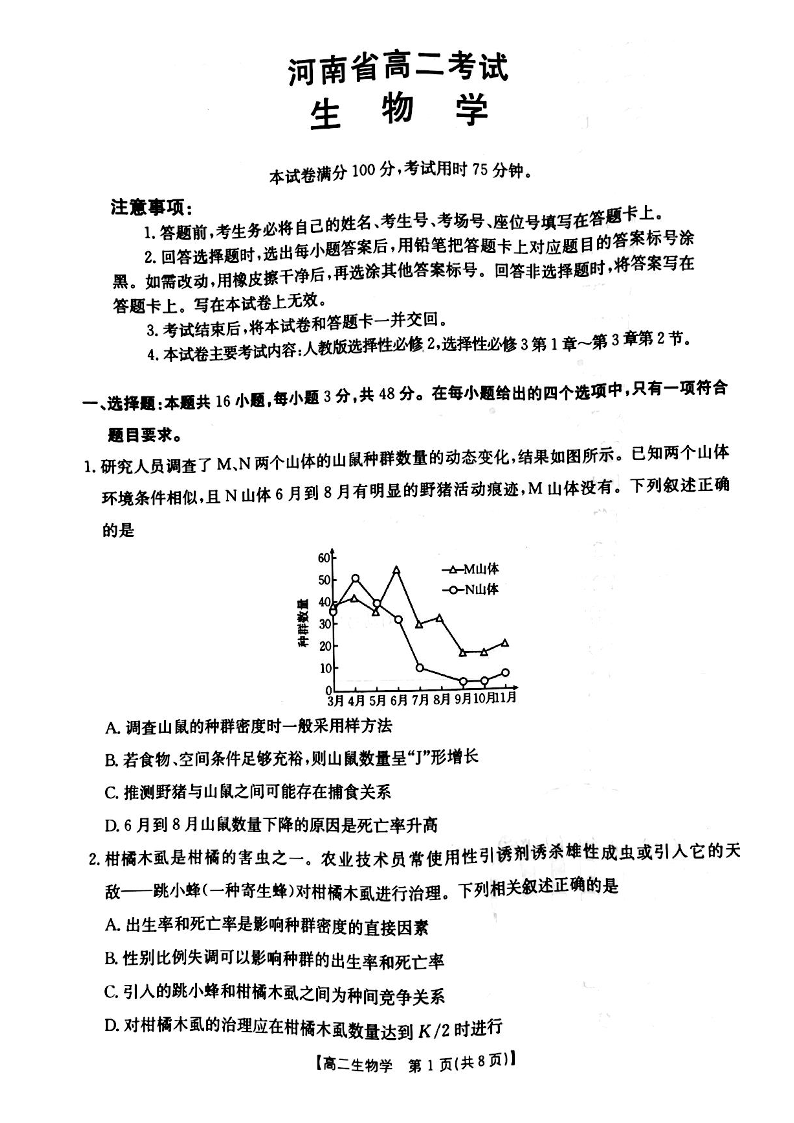 河南省安鹤新联盟2024-2025学年下学期3月高二联考生物