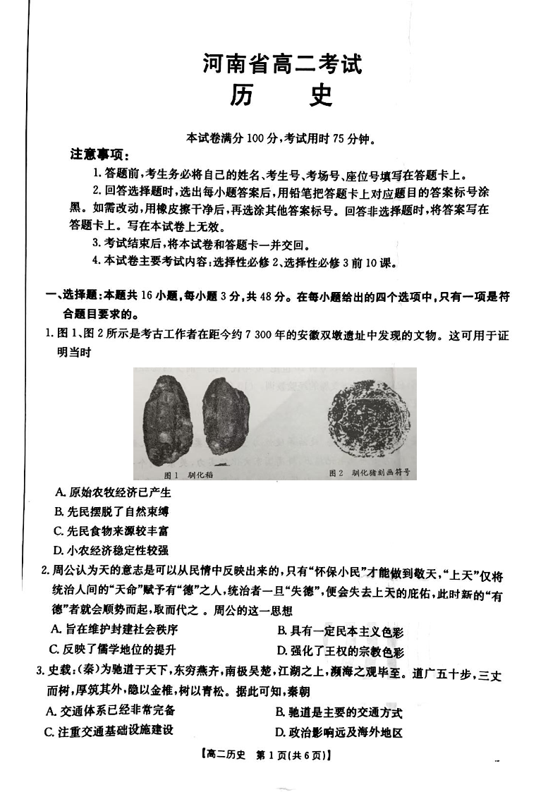 河南省安鹤新联盟2024-2025学年下学期3月高二联考历史