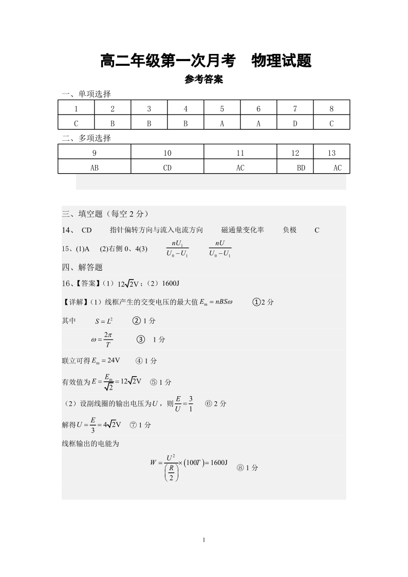 海南省海口市海南中学2024-2025学年下学期3月高二月考物理答案