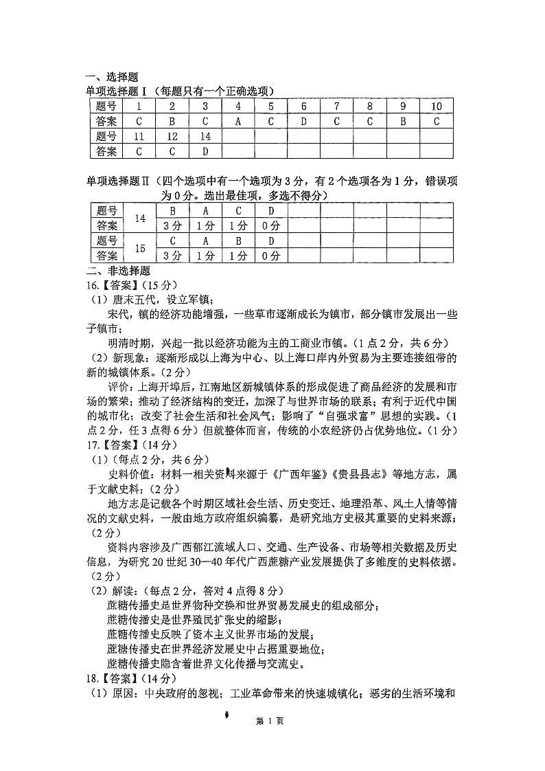 海南省海口市海南中学2024-2025学年下学期3月高二月考历史答案