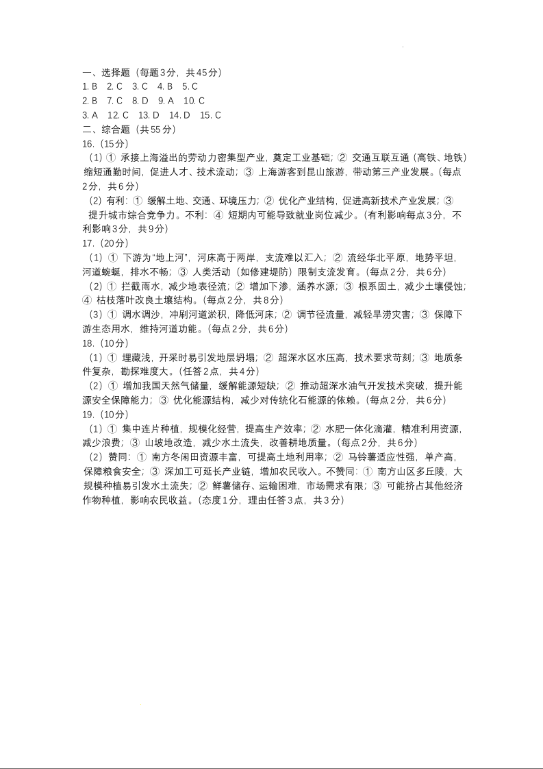 海南省海口市海南中学2024-2025学年下学期3月高二月考地理答案